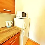 ブダペストの06区 テレ-ズヴァロス地区にあるCentral Spacious Flatアパ-トはリスト・フェレンツ国際空港から25キロメ-トル離れています. アパ-トメントに器具でいっぱいの台所があり,電子レンジ,電気ポット と冷蔵庫を完備しています.